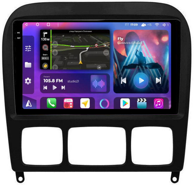 Магнитола для Mercedes-Benz S W220 1998-2005 (рамка черная) - FarCar 220M на Android 13, QLED+2K, TS10, CarPlay, 4G SIM-слот