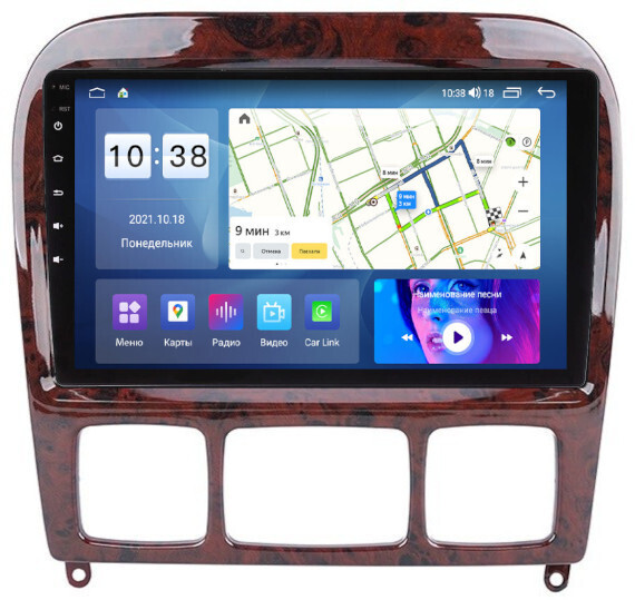 Магнитола для Mercedes-Benz S (W220) 1998-2005 (рамка под дерево) - Parafar PF211T2XHD на Android 13, 8-ядер, 4Гб+64Гб, CarPlay, 4G SIM-слот
