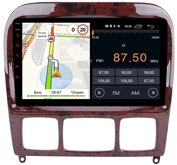 Магнитола для Mercedes-Benz S (W220) 1998-2005 (рамка под дерево) - Parafar PF211T2FHD на Android 13, 8-ядер, 2Гб+32Гб, CarPlay, 4G SIM-слот