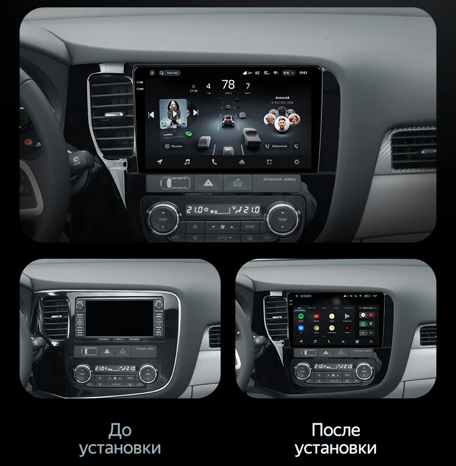 В комплекте идёт проводка с CAN-адаптером, полностью поддерживающая штатную камеру заднего вида и заводской круговой обзор 360 (4 камеры) с переключением режимов, штатную аудио-систему Rockford Fosgate, а так же отображает двузонный климат контроль и открывание дверей. Динамические линии парковки будут отображаться только на Outlander 2015+ годов выпуска.