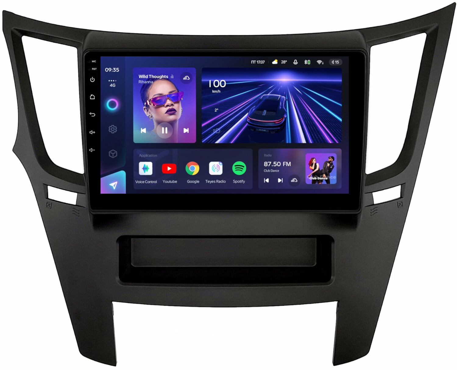 Магнитола для Subaru Legacy 5, Outback 4 2009-2014 (левый руль, рамка черная) - Teyes CC3 монитор 9" QLED на Android 10, ТОП процессор, 4+32Гб, CarPlay, 4G SIM-слот