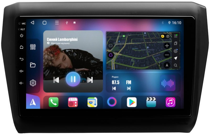Магнитола для Suzuki Swift 5 2016-2023 (рамка матовая 9) - FarCar 179-2M монитор 9" QLED на Android 13, 8 ядер (TS18), CarPlay, 4G SIM-слот