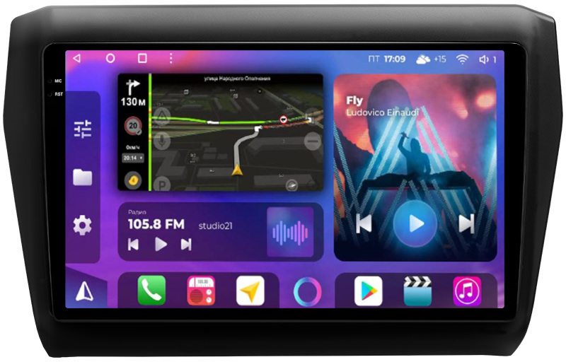 Магнитола для Suzuki Swift 5 2016-2023 (рамка матовая 9) - FarCar 179-2M на Android 13, 2K QLED, TS10, CarPlay, 4G SIM-слот