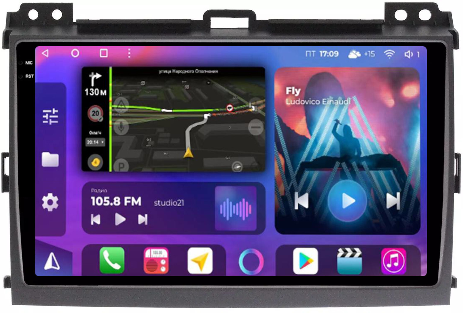 Магнитола для Toyota Land Cruiser Prado 120, Lexus GX470 (экран климата внизу) - FarCar 456M на Android 13, QLED+2K, TS10, CarPlay, 4G SIM-слот