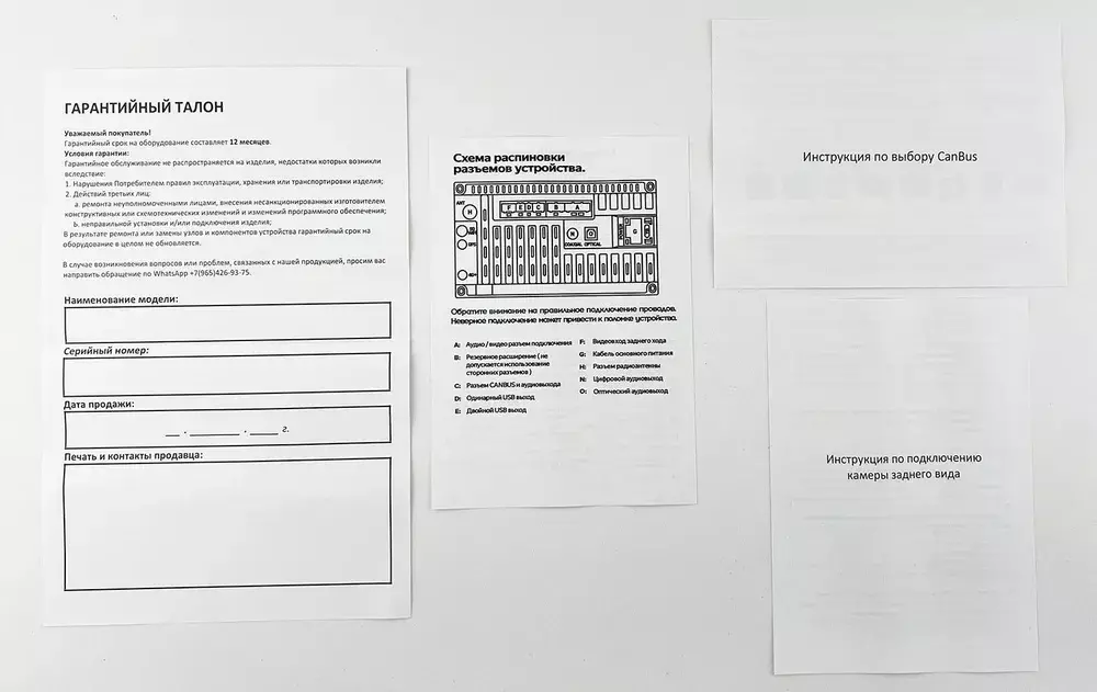 3. Гарантийный талон Canbox на последней странице или на отдельном листе.