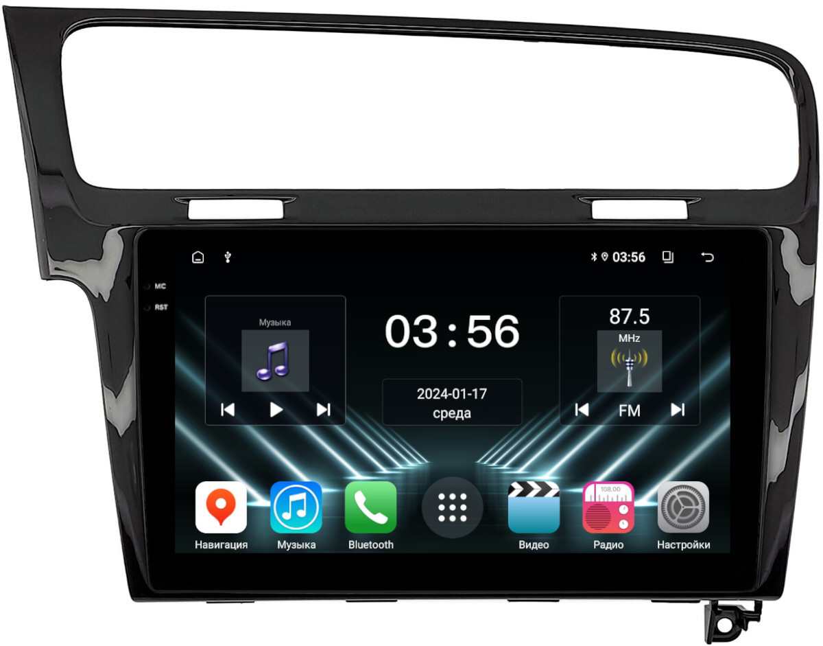 Магнитола для Volkswagen Golf 7 2012-2020 (рамка черный глянец) - FarCar DX257M монитор 10.36" IPS на Android 13, 4+64Гб, CarPlay