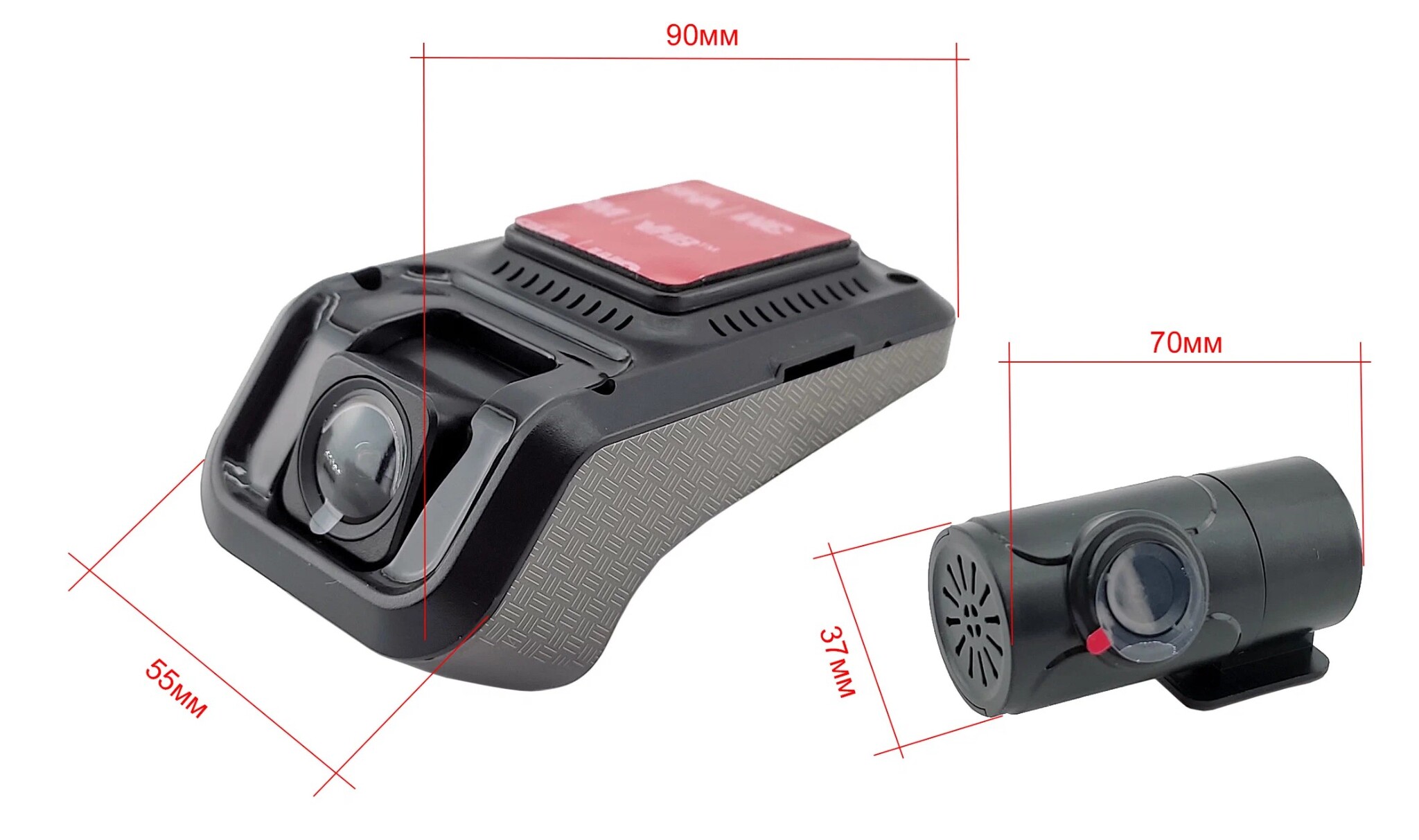 Регистратор крепится на лобовое стекло на двухстороннем скотче и подключается в USB разъем Android магнитолы. С помощью удлиняющего кабеля (идет в комплекте) подключается задняя камера, которая устанавливается внутри салона. Заднюю камеру можно подключить к фонарю заднего хода и тем самым будет также работать как камера заднего хода. Также преимуществом данной модели является компактный металлический корпус, который отводит тепло.